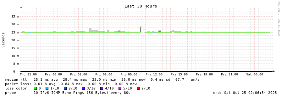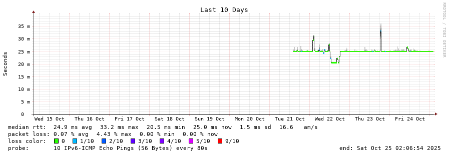 traceroute to 2a0c:9a40:8610:e3f::1 (2a0c:9a40:8610:e3f::1), 30 hops max, 80 byte packets - Generated at 2025-10-24 16:15:01