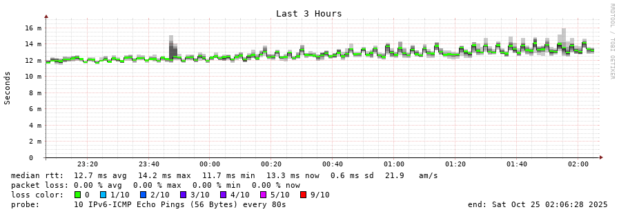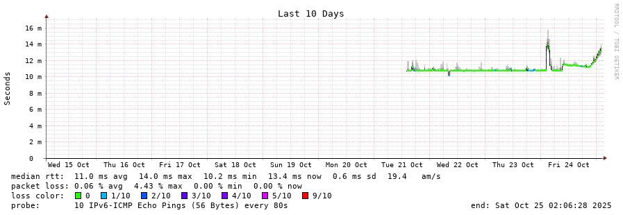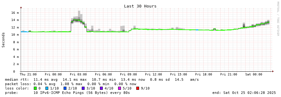 traceroute to 2a00:c30:bbbb:d::2 (2a00:c30:bbbb:d::2), 30 hops max, 80 byte packets - Generated at 2025-10-24 16:15:01