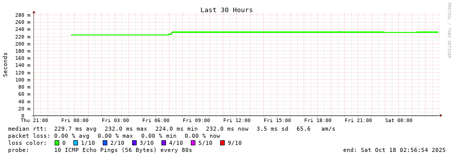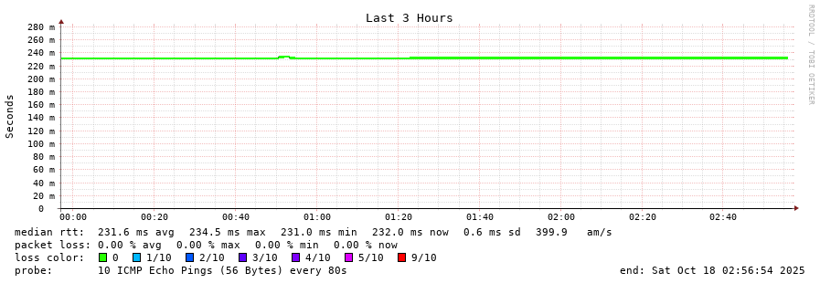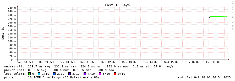 10 > 185.70.203.57 (185.70.203.57) [AS6762] 231.820ms 231.970ms 231.957ms