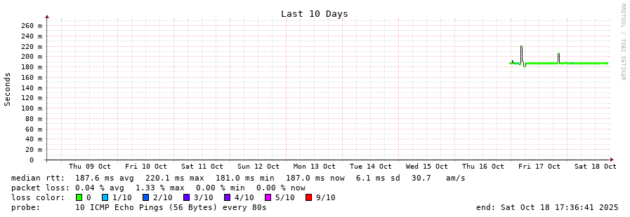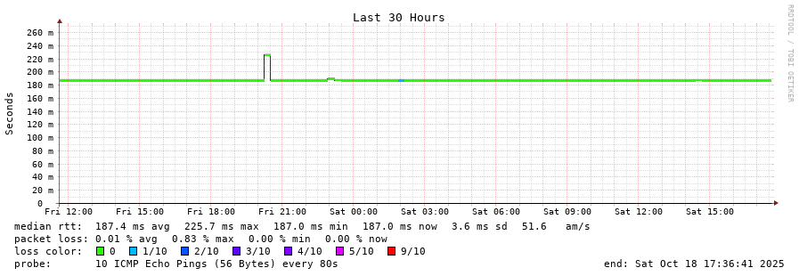 14 > 179.51.126.60 (179.51.126.60) [AS263210] 187.346ms 187.309ms 187.415ms
