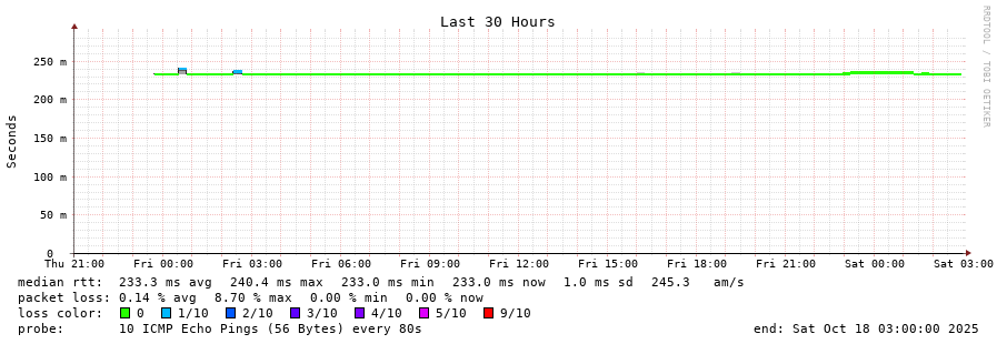 traceroute to 190.105.0.2 (190.105.0.2), 30 hops max, 60 byte packets - Generated at 2025-10-18 02:30:01